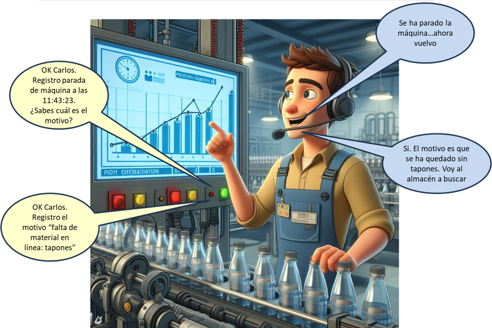 "FGVA I400 VOZES"FGVA I400 VOZES-INTERFACES HMI PARA EL CONTROL DE LOS SISTEMAS DE INFORMACIÓN DE MÁQUINAS MEDIANTE LENGUAJE NATURAL DESCRIPCIÓNEl proyecto se centra en investigar el problema de cómo aplicar tecnologías de reconocimiento de voz y de interpretación del lenguaje natural para que el operario pueda interactuar con sistemas de información de control de máquina o proceso. Además, requiere del desarrollo de sistemas de control y APIs que permitan la comunicación bidireccional de la nueva interfaz y los sistemas de información de máquina. OBJETIVOSEl objetivo general del proyecto es investigar sobre interfaces HMI para el control de los sistemas de información de máquinas basadas en la interpretación del lenguaje natural, que faciliten la captura de datos manuales de cualquier proceso de fabricación.